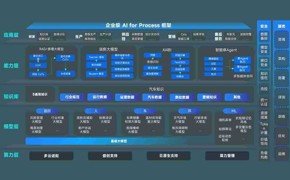 端到端的一站式AI工作空间深度融合了从企业战略规划到日常经营的全流程业务板块,,,,定向解决车企内部领域多、、、部门多、、、、链条长、、场景碎片化等难题,,支持车企快速构建以AI为核心的生产力写作体系,,实现任务执行与AI能力的无缝集成与交互