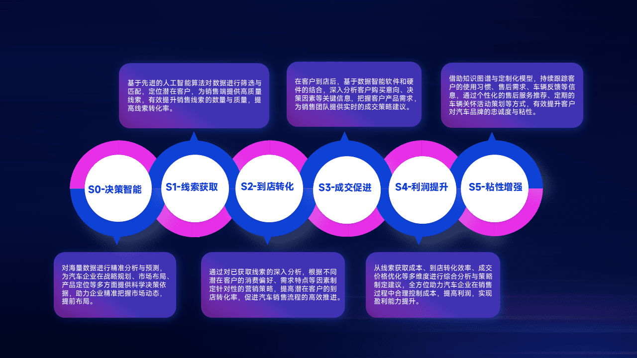 通过拓宽潜在客户来源、、优化线索分配并提高到店转化率,,,以增强销售效率。。。。同时,,利用线索数据不断优化分析模型,,,有效提升转化率,,扩大营销影响力。。。。